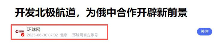 环球网2025-06-30《开发北极航道,为俄中合作开辟新前景》