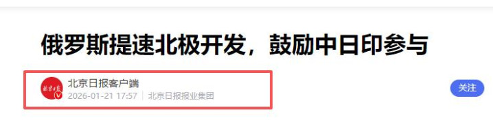 北京日报2026-01-21《俄罗斯提速北极开发,鼓励中日印参与》
